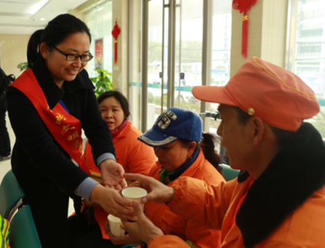 据悉,这是武汉市第一家专门开辟环卫工人便民服务点的自来水营业厅。营业厅负责人钱进表示,环卫工人用辛勤的劳动装扮城市,美化环境,他们应该受到全社会的理解和尊重。作为一个窗口单位,在做好本职工作的同时,理所当然要给予“城市美容师”力所能及的关爱和帮助。