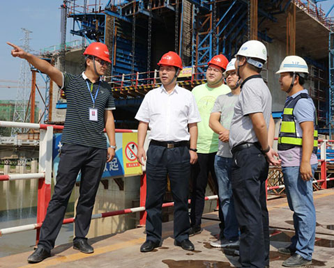 9月15日上午,集团公司董事长金国发前往岱山大桥和解放大道下延线朱家河大桥工程现场,检查工程建设情况。
