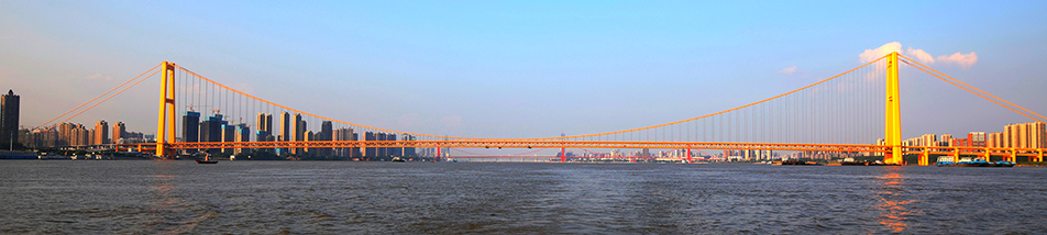 杨泗港长江大桥由中铁大桥院负责设计,中铁大桥局、武船重工BT联合体负责施工。该工程是长江上首座双层公路大桥,连接汉阳与武昌。工程全长4.13公里,跨江段长2.2公里,主跨1700米,一跨过江,上层为城市快速路,双向6车道,设计行车时速80公里;下层为城市主干道,双向6车道,设计行车时速60公里,两侧设非机动车道及人行观光道。