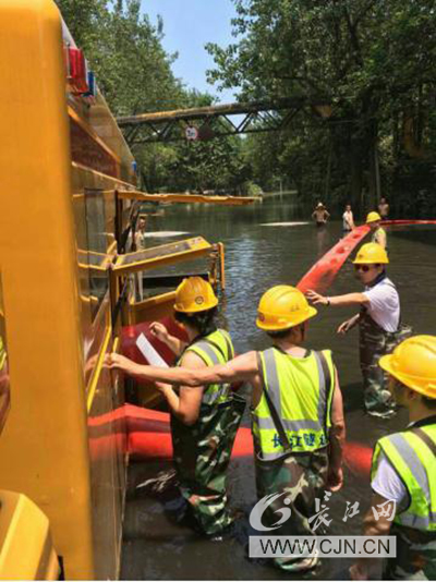 长江网2016年7月14日讯(通讯员 尚国勇 谢铭辉)“我们现在主要是将武昌小南湖的水抽到巡司河,让小南湖的水位下降1米,减轻南湖片区的渍水压力”,7月14日下午,在武昌文馨街小南湖边,武汉城投水务集团长江隧道公司设备部长王文汶正指挥着“龙吸水”移动泵车抽排湖水,据他介绍,长江隧道“龙吸水”防汛抢险义务救援队已在此工作了2天,目前,已使整个小南湖的湖面下降了0.25米。