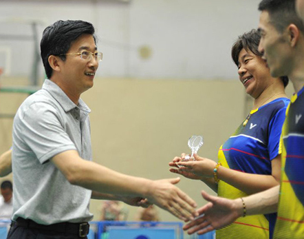 6月8日,集团公司职工乒羽对抗赛第二回合比赛在水务集团宗关体育馆如期举行。集团公司总经理李兵,董事邓耀光、江强生及总经理助理郑小华等莅临现场观摩比赛,并为获奖选手颁奖。