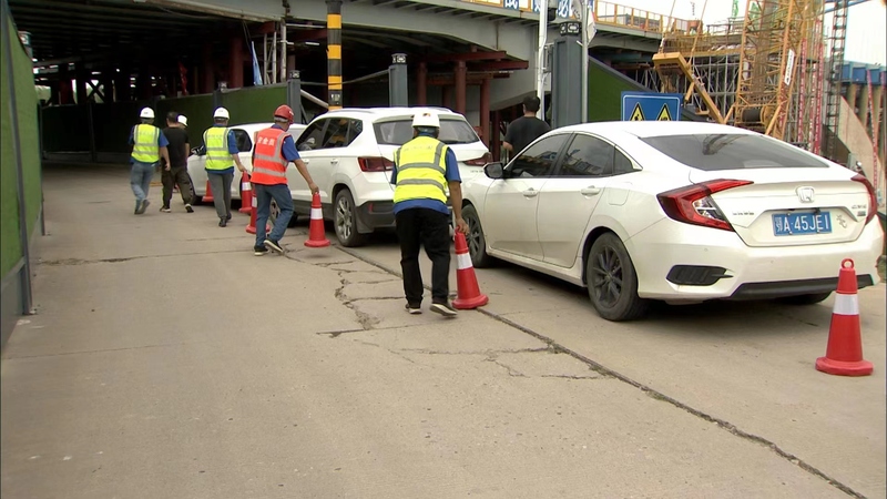科目三:汉阳引桥段第五联钢梁临时护栏松动,掉落至桥底道路上,行驶车辆发现意外紧急制动,造成3车追尾,长丰桥项目部立即启动应急预案进行报警、疏堵、排障。