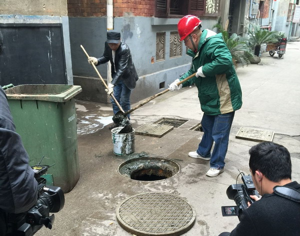 近日,武汉电视台四套《江城岔巴子》栏目组制作了一档以“每一个日子都是雷锋日”为主题的系列报道,将采访触角深入我市各类为民服务工作一线,真实反映普通服务工作者的日常工作状况,并选择与房产集团第二分公司联合开展了一次以“为民、利民、便民”为主题的排渍疏捞服务活动。 2月23日一大早,栏目主持人健哥来到房产集团第二分公司,和第二分公司爱岗敬业模范、小修班长罗佑喜一道,带领班组其他师傅前往管辖的兰陵村片区共同进行义务疏捞。该片区属于老旧优秀里弄,地势较低,排水设施不够完善,加之周边有多处餐馆营业,导致排水管网日常维护工作量及工作难度较大。一行人带着疏通机、竹篾、斗车等工具到达现场后,将该处居民楼周边的排水管道、窨井、化粪池的情况详细检查了一遍,决定采取分散疏捞的方式,彻底清捞窨井和水管内的油污和粪便。而健哥也亲身参与体验了一次排渍疏捞工作的全过程。经过一个上午的努力,大家共清捞污泥粪便3车,计2立方米,有效解决了困扰片区居民多日的渍水满溢难题。疏捞过程中,健哥有感而发:“看来学雷锋真不是一句口号,你是要用实际行动做的,这个班组今天就五个师傅,学雷锋我只做今天一天,而这些师傅们365天,天天都在做,虽说在技术层面来讲,没有很大的难度,但是我自己干了一天下来,确实感觉到有点吃不消,而师傅们在这个岗位上一干就是十年二十年,我从心底敬佩他们。”此次活动全过程已在3月7日的《江城岔巴子》栏目中播出。