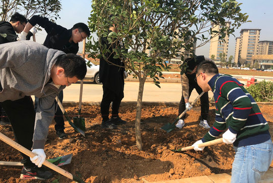 3月12日是全国第40个植树节,立城公司20余名员工,参加了临空投公司举办的 “建设美丽武汉,共创美好生活”植树活动。 本次植树活动在临空新城宋家岗东路(华云路-临空大道西侧)规划用地上进行。大家精神抖擞,有的挥锹铲土、有的扶树填土、有的浇水,互相配合,忙得不亦乐乎。一个多小时后,50余棵桂花树、红继木树在三月的和煦春风里“安家落户”,为临空新城增添了一片新绿。
