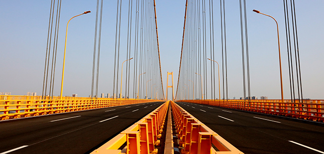 杨泗港长江大桥由中铁大桥院负责设计,中铁大桥局、武船重工BT联合体负责施工。该工程是长江上首座双层公路大桥,连接汉阳与武昌。工程全长4.13公里,跨江段长2.2公里,主跨1700米,一跨过江,上层为城市快速路,双向6车道,设计行车时速80公里;下层为城市主干道,双向6车道,设计行车时速60公里,两侧设非机动车道及人行观光道。