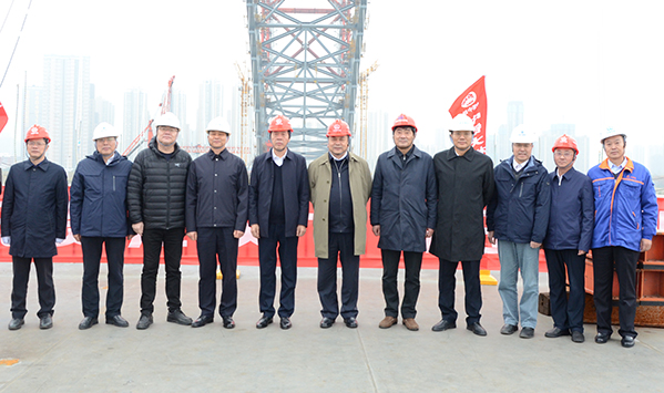 市城建局局长夏平,探花 董事长李兵、总经理余新民、副总经理林驰;大桥局总经理李晓峰、副总经理季跃华及代建、施工、监理等单位负责人现场见证了合龙的历史一刻。