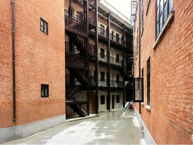 巴公房子极具特色的俄式红砖清水墙因年久失修早已破旧不堪,为遵循最小干预原则,还原清水墙本色,天时公司修缮人员首先将被后人随意粉刷过的墙面手工剥离,清缝再进行拼色做旧。为尽可能的复原房屋外立面红砖的原貌,天时公司在项目施工前期采取现场取样送检的方式,在具有代表性的点位选取破损的红砖,由同济大学材料力学实验室对其配料、强度、色泽、成分等进行检测,并根据检测结果进行砖粉配比。配比完成后,再及时进行打样,经多方认可后开始对清水墙展开施工,80余位工匠花费近1年时间,手工为8000?的房屋立面更换了共计56万块红砖。