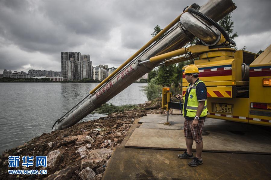 ▲7月15日,武汉城投长江隧道“龙吸水”应急抢险突击队在南湖片区加紧抽排工作。