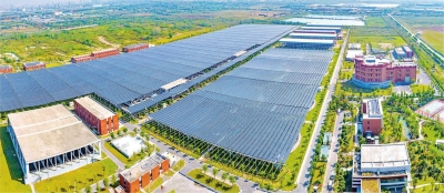 2022年11月,北湖污水处理厂44884块光伏板全容量并网运行,总面积达到18.5万平方米,相当于25个足球场面积,是国内最大的污水处理厂分布式光伏发电项目。
